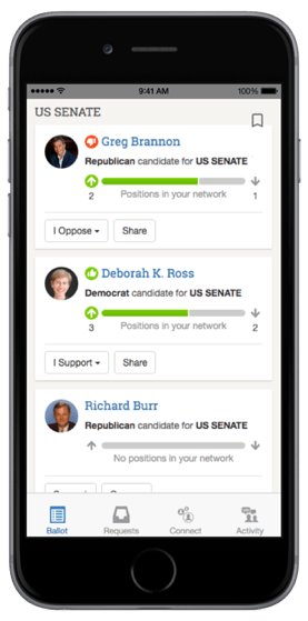 We Vote helps you vote your values at the ballot box by learning from people and organizations you trust. We collect and streamline complex data from thousands of sources to make voting easier. Nonprofit groups provide issue and candidate recommendations, and anyone with a Twitter account can create and share their own voter guide.